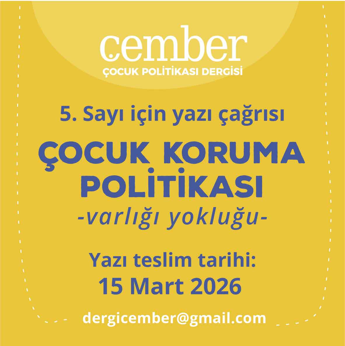 Yazılarınızı dergicember@gmail.com adresine gönderebilirsiniz.